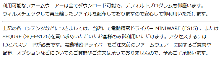 | Firmware | オプションや最新のファームウェア(Firmware)はMembers Page▶をご覧下さい。 |