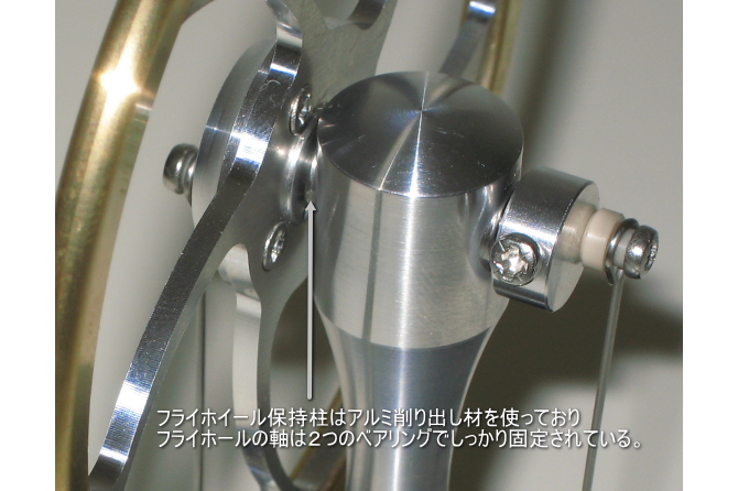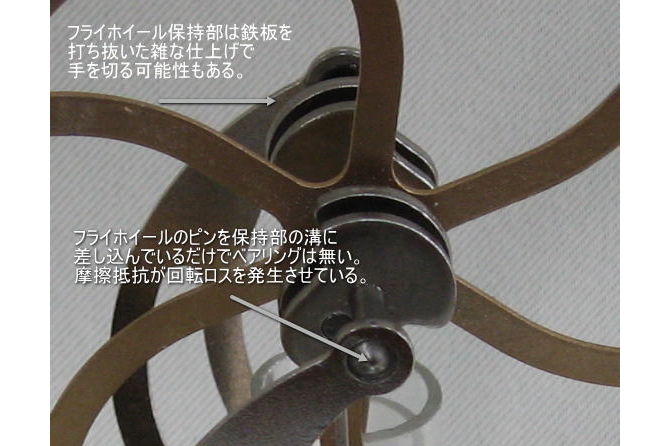 ベアングを2個~3個装備して、フライホイールが滑らかに回転し、摩擦抵抗ロスが少ない。