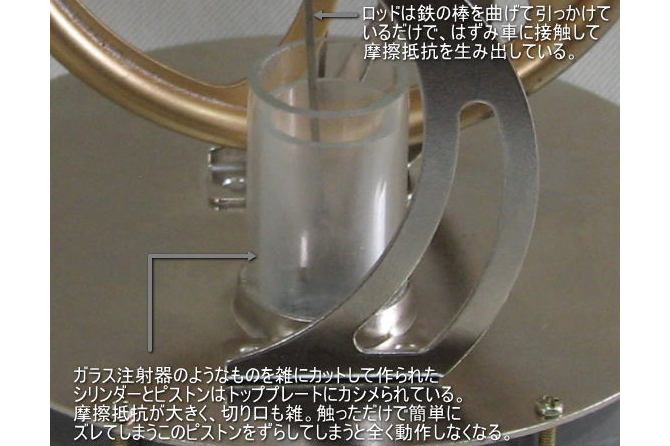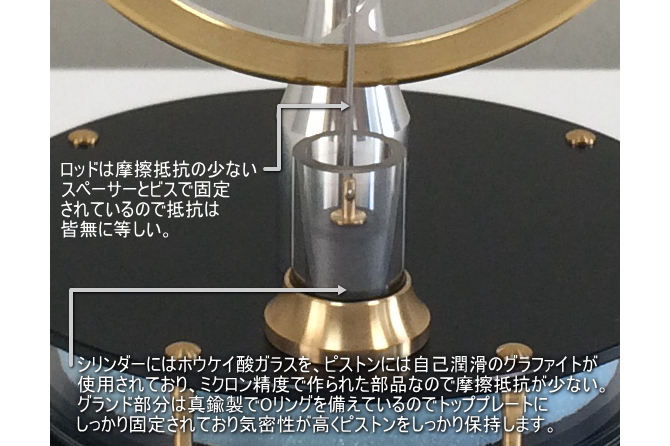 ピストンは自己潤滑グラファイトが使用されておりミクロン精度の部品で摩擦抵抗が少ない。