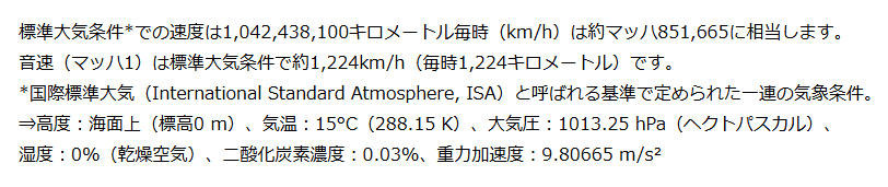 | レーザー光の速度 | 半導体レーザーポインターから放出される光の速度はどのくらいなのか?▶それは戦闘機(マッハ約~2.5)や極超音速ミサイル(マッハ約~20)等よりも圧倒的に速いです。 光の速度は真空中では約299,792,458メートル毎秒(約3×10^8m/s)です。これは音速(約343メートル毎秒)を大きく超えています。したがってレーザーポインターの光の速度はマッハ約874,030に相当します。これは約10億キロメートル毎時=1,042,438,100キロメートル毎時(km/h)であり、光は非常に高速で移動するためレーザーポインターの光が目に見えるまでの時間はほとんど無視できるほど短いです(≒0)。▶約0.134秒で地球を一周する速度。 |