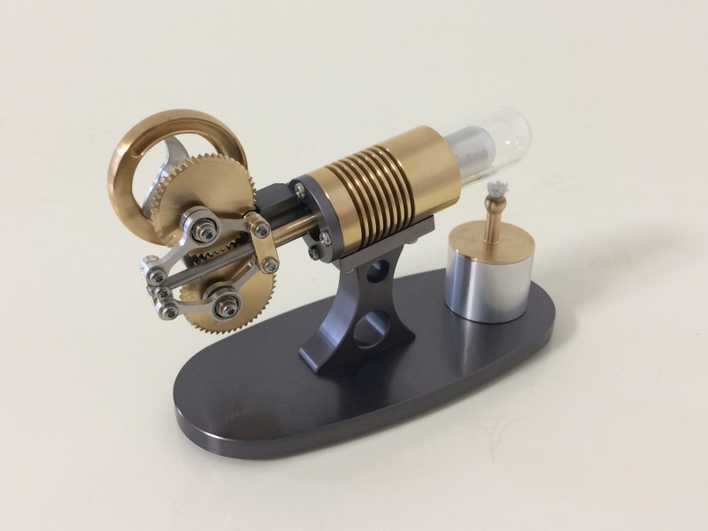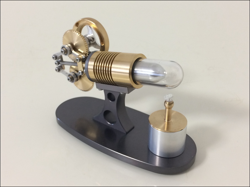 | スターリングエンジン | スターリングエンジンは内燃機関のような燃焼(爆発)工程が無い外燃機関ですので音が静かで排気ガスもない、室内で楽しめるミニチュアエンジンです。付属のバーナにはドラッグストアやホームセンター、ネット通販等で販売されている燃料用アルコールを入れます。 |