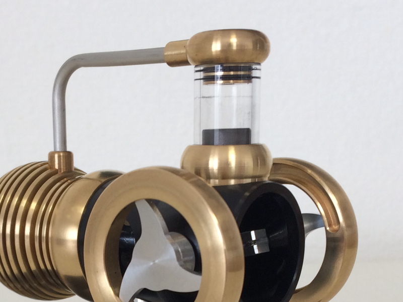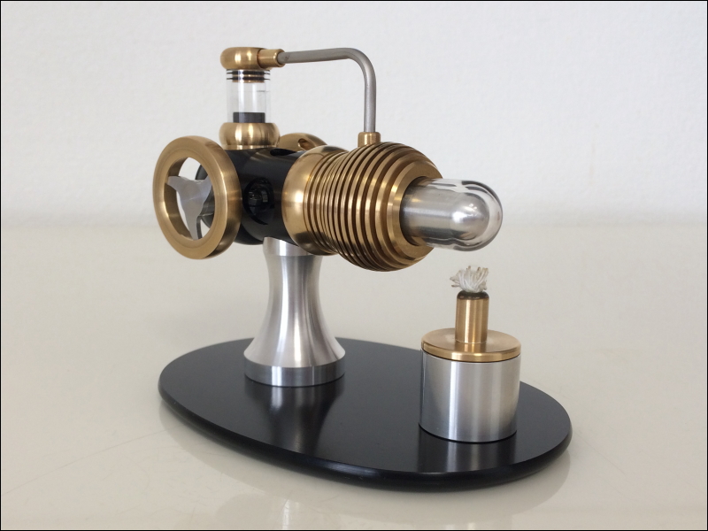 | チューブ | コンパクトで精巧、美しいデザインのガンマタイプ・スターリングエンジンです。このモデルはクランクを使用せず、パワーピストンのストロークを90度にする事により約2,000rpmの最大回転出力を誇る、超高性能な小型ハイパフォーマンスエンジンです。 |