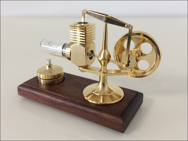 | スターリングエンジン | スターリングエンジンは内燃機関のような燃焼(爆発)工程が無い外燃機関ですので音が静かで排気ガスもない、室内で楽しめるミニチュアエンジンです。付属のバーナにはドラッグストアやホームセンター、ネット通販等で販売されている燃料用アルコールを入れます。 |