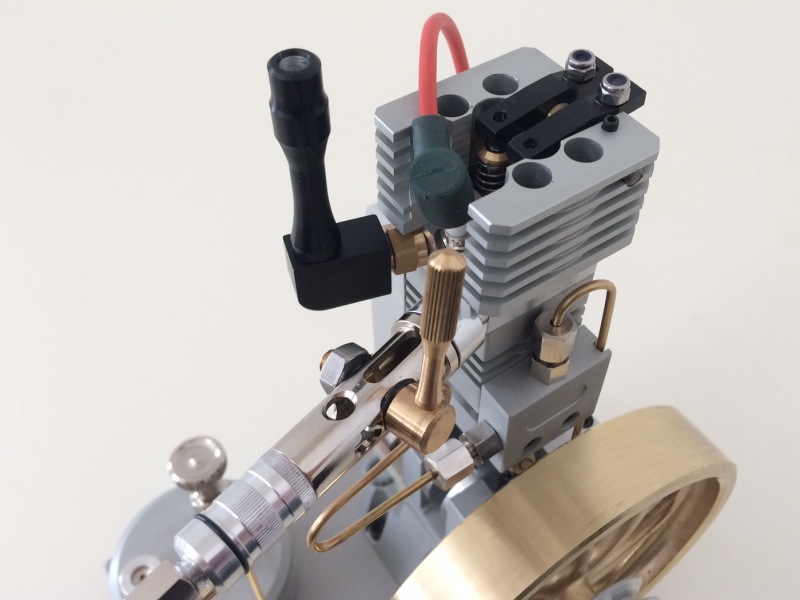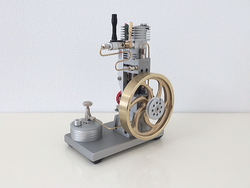 | ガスエンジン | ガスエンジンはライターのガスなどで動作します。ライターのガスは液体のガスを気化させて燃焼させる事で火花を発生させる仕組みで、燃焼によって二酸化炭素や水蒸気は発生しますが排気ガスは出ません。ガソリンなどを使用した内燃機関のように燃焼によって発生する排気ガスは出ませんので、室内で楽しめるミニチュアエンジンです。キャブレター。 |