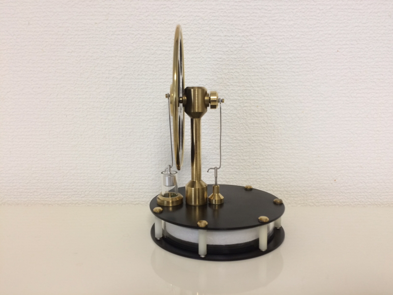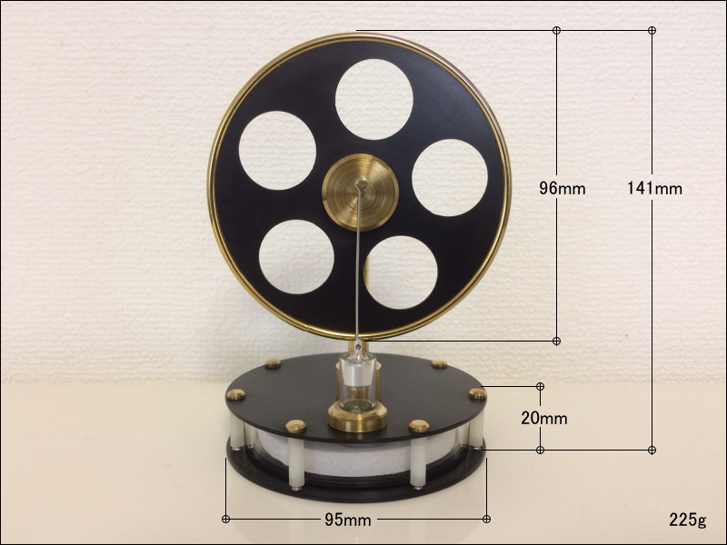 | 本物の性能 | 米国や英国の製品を模した安価な低温度差エンジン擬きは、ディスプレーサの上下の温度差が(約4~10℃)では全く動作しませんが、こちらの製品は手の平との温度差等でも動作する希少な製品です(サーモスマグカップなどに注いだお湯等で約8時間動作します)。 |