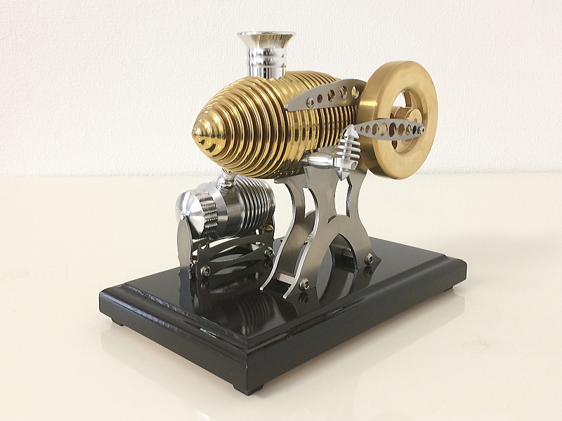 | バキュームエンジン | バキュームエンジンは内燃機関のような燃焼(爆発)工程が無い外燃機関ですので音が静かで排気ガスもない、室内で楽しめるミニチュアエンジンです。付属のバーナにはドラッグストアやホームセンター、ネット通販等で販売されている燃料用アルコールを入れます。 |