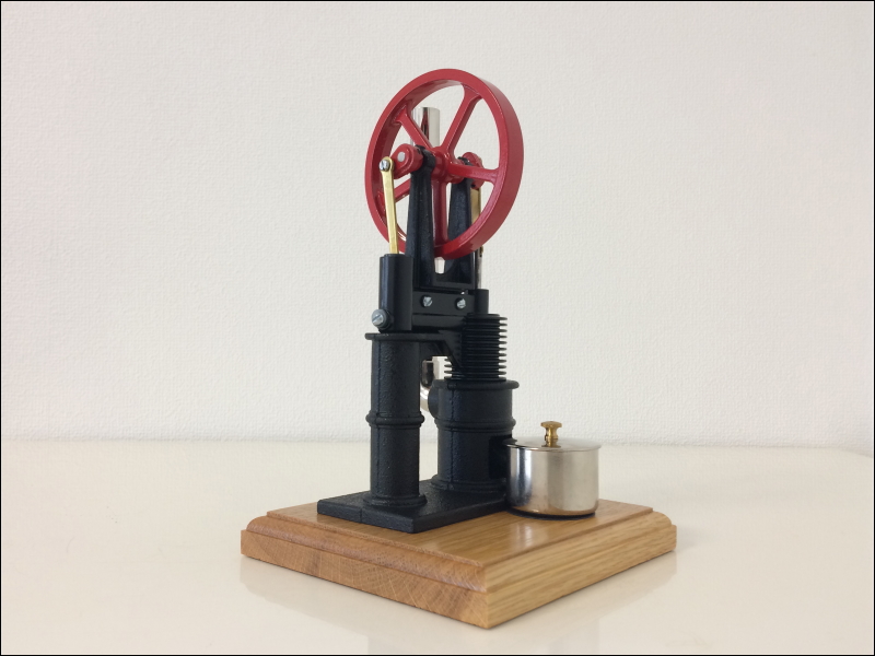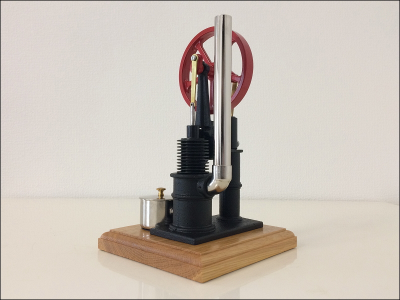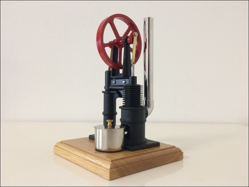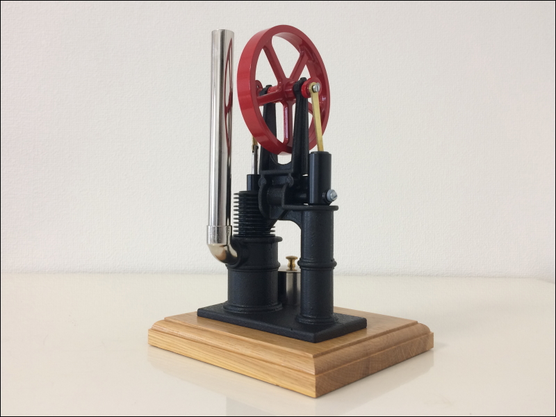 | Model:SE#10 | ピーナッツライダー(PEANUT RIDER)スターリングエンジンは縦型の赤いフライホイールとチムニーが特徴的な長い歴史を持ったデザイン設計のエンジンです。古いモデルはチムニー(煙突)が黒色塗装でしたが、新型はクロームメッキ仕様になっています。 |