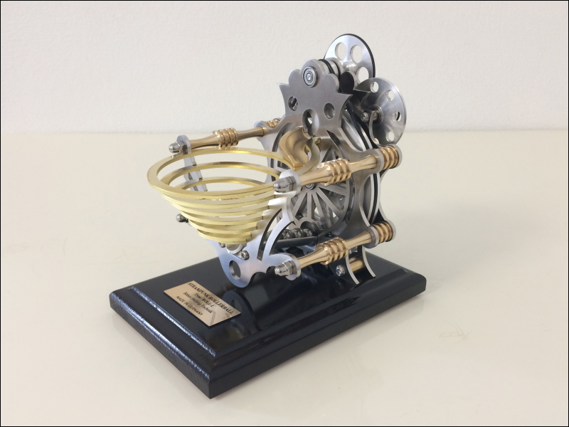 | ROLL1 | ドイツ製Bohm社のスターリングエンジン用のアクセサリーであるROLL1 Steampunk Marble Machine(スチームパンクマーブルマシン)はミニチュアエンジン等の出力プーリーからベルトで動力を得て動作させるオプションです。上部にボールを送り、レールを回りながら下るこのモデルは非常に人気があるメカニカルなオプションです。駆動ベルトの「回転方向」に関わらず動作するモデルですので、Bohm社製のスターリングエンジン以外の動力プーリーを備えた他社製エンジンでもベルトで接続して楽しめます。 |