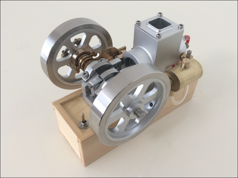 | Hit & Missエンジン | Zippoライターのオイルやホワイトガソリン、混合ガソリンなどで動作する、中国製Eachine社のヒットアンドミス型エンジンです。ABC science japanで仕様を指定したモデルです。 |