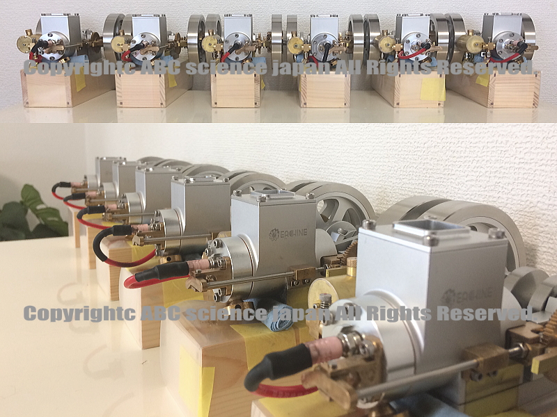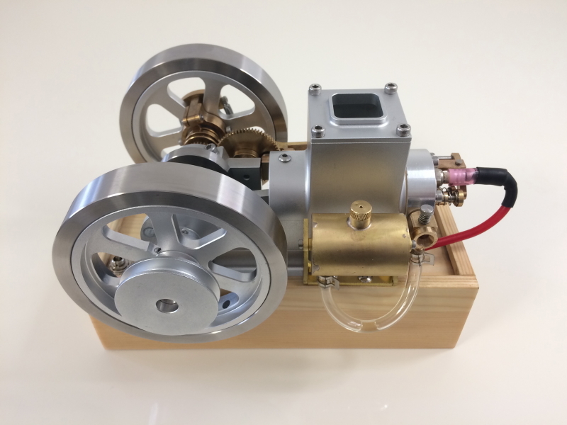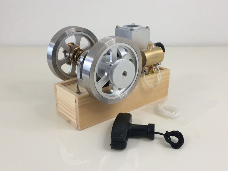 | Hit & Missエンジン | Zippoライターのオイルやホワイトガソリン、混合ガソリンなどで動作する、中国製Eachine社のヒットアンドミス型エンジンです。ABC science japanで仕様を指定したモデルです。 |